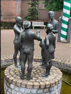 Wanneer u in het Duitse dorpje Elten loopt, vindt u bij de kerk dit leuke standbeeld. Bij mooi weer zijn deze 4 mannetjes omringd door