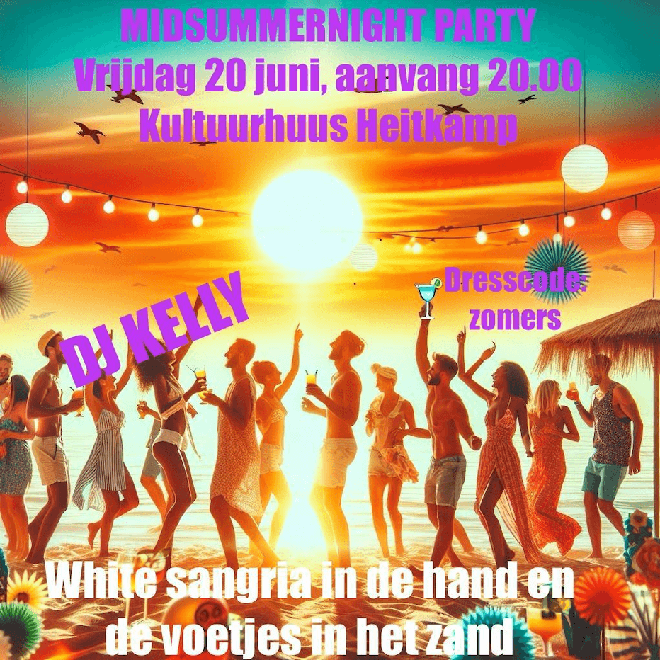 Kultuurhuus Heitkamp viert de aanvang van de zomer met een bruisend midsummernight-event. DJ Kelly staat op vrijdagavond 20 juni achter de mengtafel om iedereen in zomerse sferen te brengen.