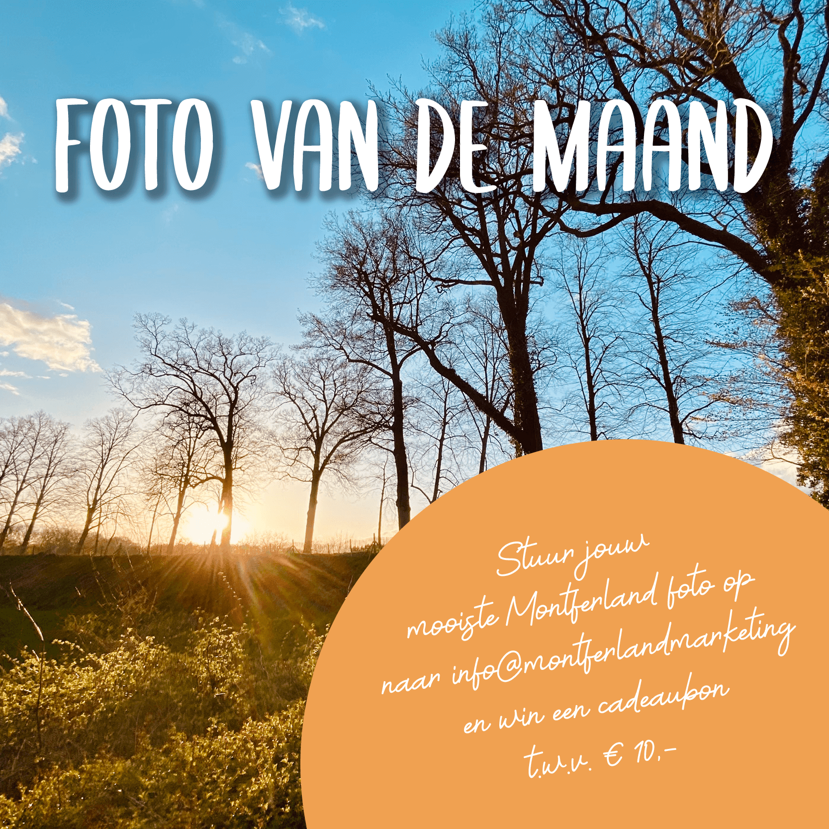 Wij als Stichting Montferland Marketing hebben het idee van ‘foto van de maand’ dit houdt in dat jullie foto’s kunnen insturen die gemaakt zijn in/van gemeente Montferland. Uit al deze foto’s kiezen wij eens per maand een ‘foto van de maand’ winnaar uit. De persoon die heeft gewonnen met zijn/haar mooiste foto krijgt natuurlijk ook een beloning vanuit Stichting Montferland Marketing.