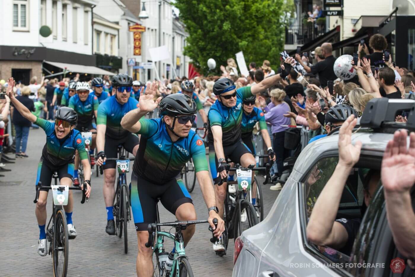 Een grootst onthaal in Kasteelstad ’s Heerenberg. Een geweldig bedrag hebben de renners bij elkaar gefietst voor het goede doel ! Klik hier en steun Bergh in het Zadel