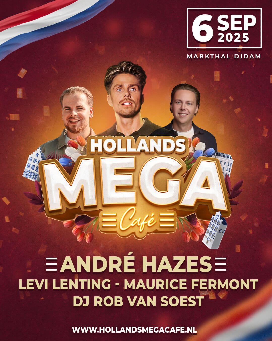 Zaterdag 6 september 2025 barst het feest los in de Markthal in Didam met niemand minder dan André Hazes Jr. Bekend van zijn vele hits, gaat hij samen met jullie het Hollands Mega Café volledig op zijn kop zetten.