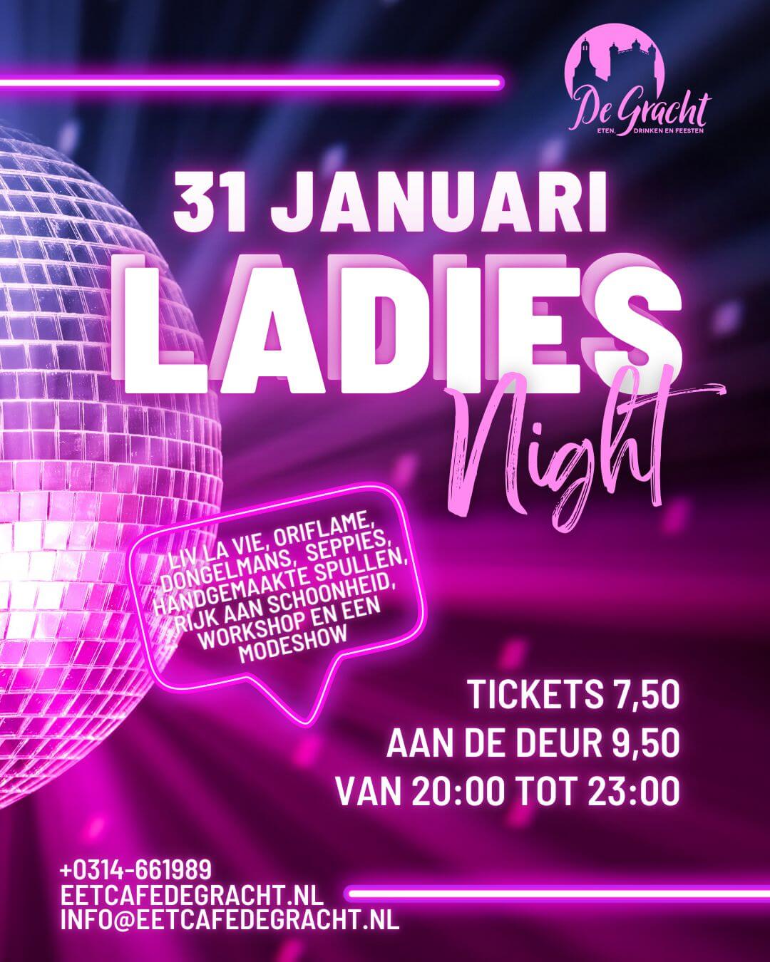Op vrijdag 31 januari is het zover: Eetcafé de Gracht organiseert een sprankelende Ladies Night! Ben jij klaar voor een avond vol inspiratie, gezelligheid en verrassingen? Trommel je vriendinnen op en kom genieten van een sfeervolle en stijlvolle avond waar jij in het middelpunt staat.