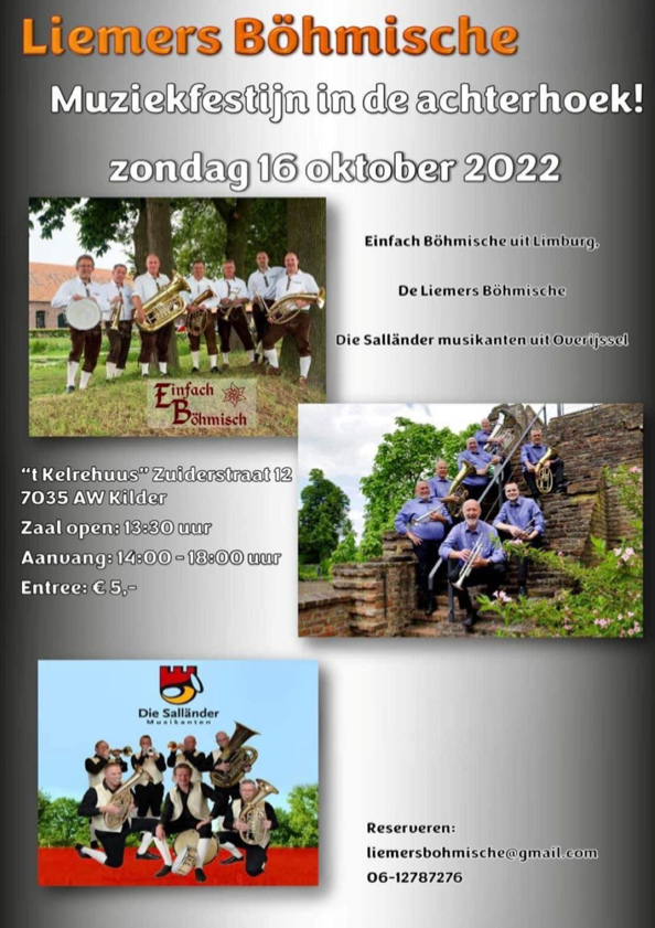 Op zondag 16 oktober 2022 vindt er een muziekfestijn in de Achterhoek plaats. Eifanch Böhmische uit Limburg, De Liemers Böhmische uit Didam en Die Salländer Musikanten uit Overijssel geven een optreden.