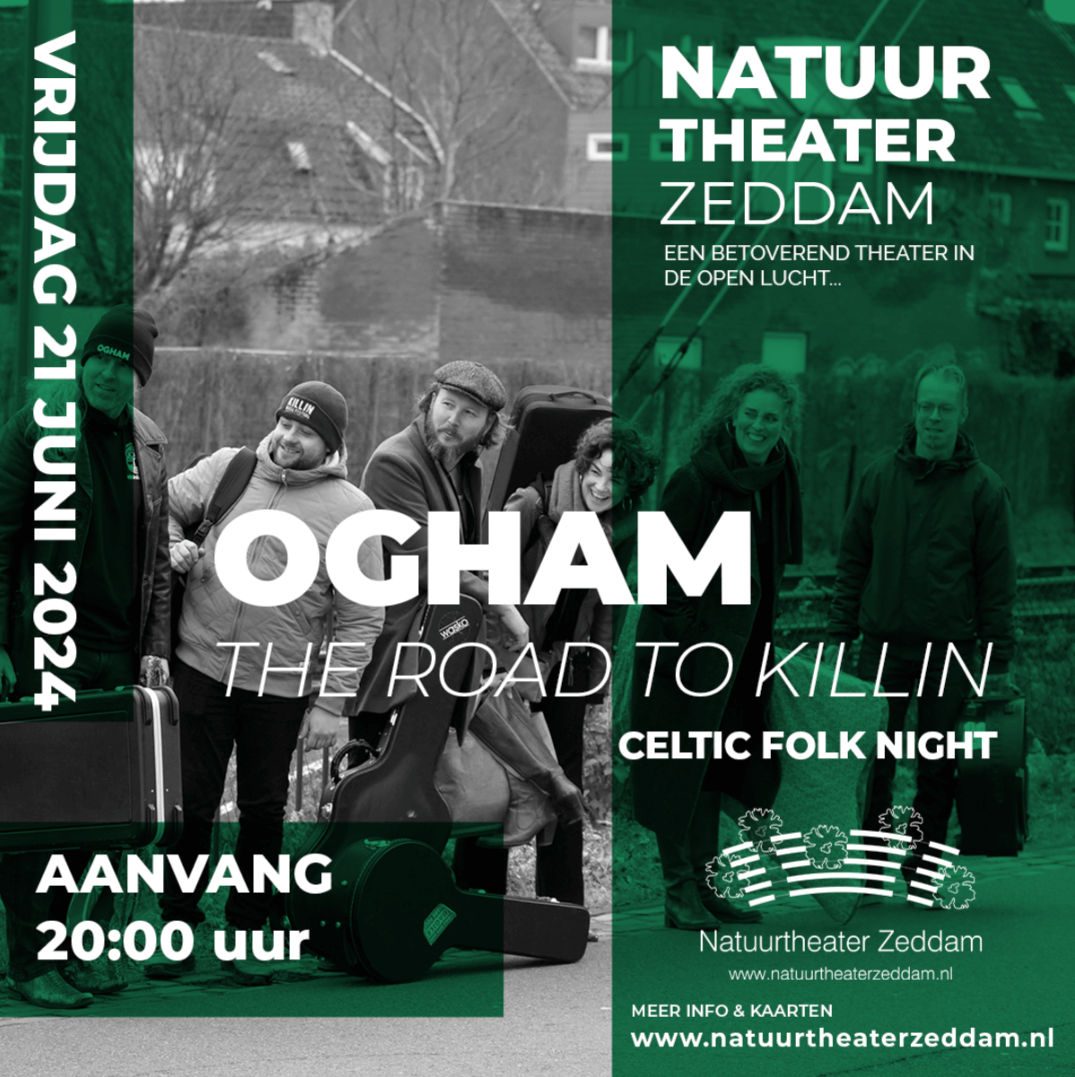 Jij gaat toch ook mee? Op reis met Ogham in de gloednieuwe voorstelling The Road Killin. Een bevlogen en ontroerende voorstelling op vrijdagavond 21 juni om 20.00 uur in Natuurtheater Zeddam. De muzikanten dagen elkaar nog meer uit. Ze spelen nieuwe jigs en reels en zingen ontroerende krachtige ballads en heerlijke Keltische up tempo songs.