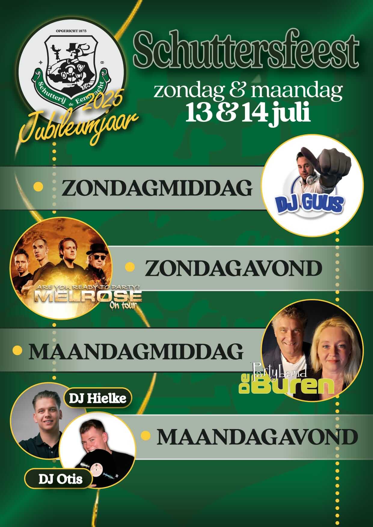 Het is bijna zover: Schuttersfeest 2025 staat voor de deur! Nog een kleine twee weken en dan barst het feestgedruis weer los in volle glorie. Dit jaar is extra bijzonder, want Schutterij de Eendracht viert haar jubileumjaar opgericht in 1875 en nu, 150 jaar later, springlevend met een feest dat je niet wilt missen.