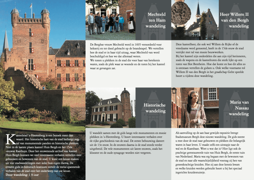Stadsmuseum Bergh organiseert historische wandelingen die u onderdompelen in deze nog steeds tastbare middeleeuwse wereld.