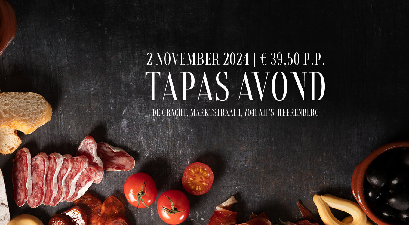 Zaterdag 2 november 2024 is er een tapas avond bij de Gracht in ‘s-Heerenberg!