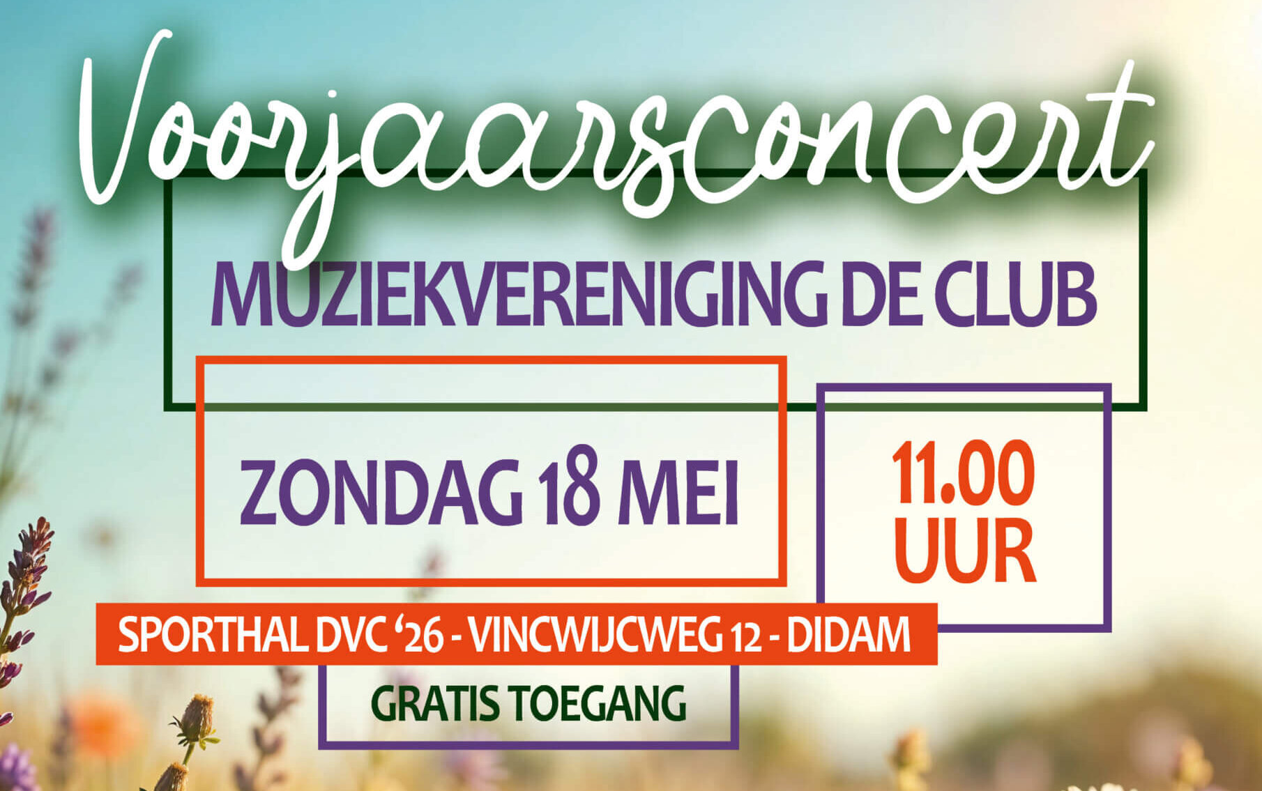 Op zondagochtend 18 mei presenteert Muziekvereniging De Club uit Didam haar jaarlijkse voorjaarsconcert. Het concert vindt plaats in de sporthal van DVC’26 aan de Vincwijcweg 12 in Didam.
