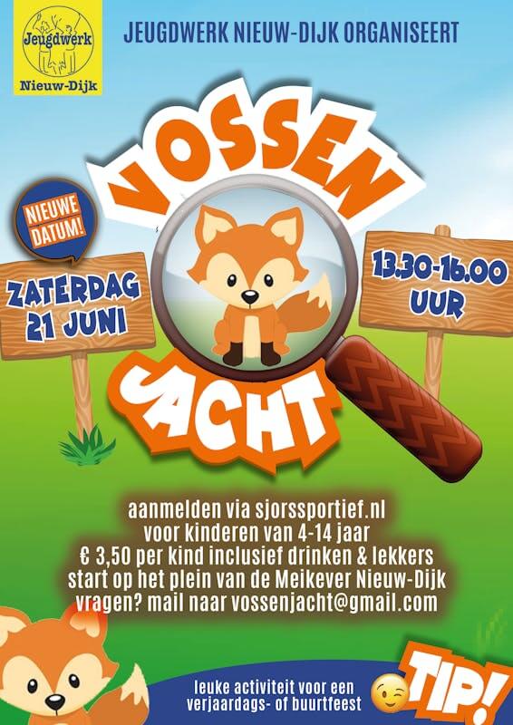 Op zaterdag 21 juni organiseert Jeugdwerk Nieuw-Dijk van 13.30-16.00 uur de Vossenjacht! Vele vossen zitten verstopt … kun jij ze vinden? Kom zoeken, leuke spelletjes doen, los de woordzoeker op en geniet van lekkers. Meld je aan via www.sjorssportief.nl