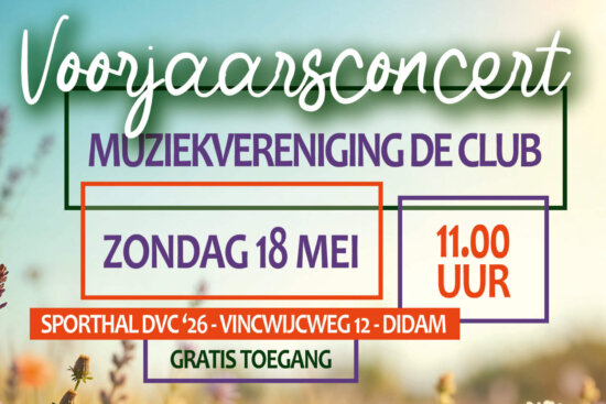 Op zondagochtend 18 mei presenteert Muziekvereniging De Club uit Didam haar jaarlijkse voorjaarsconcert. Het concert…
